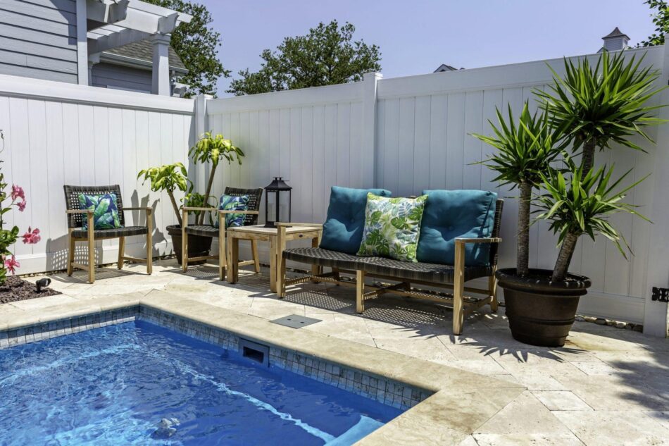 This client called Ashton Pools by Design in search of a team willing to take on the challenge of converting a small backyard into a completely secluded sanctuary, which blocks the boisterous sounds of the main street heading into downtown Rehoboth Beach. Lucky for them, we were fully equipped to achieve their vision. The homeowner wanted an outdoor space that was easily maintained. This is their home away from home, so one of the features they needed was to be able to heat their pool and turn on any lights or water feature remotely. This way it was ready for them to relax in on a summer night by the touch of a button.