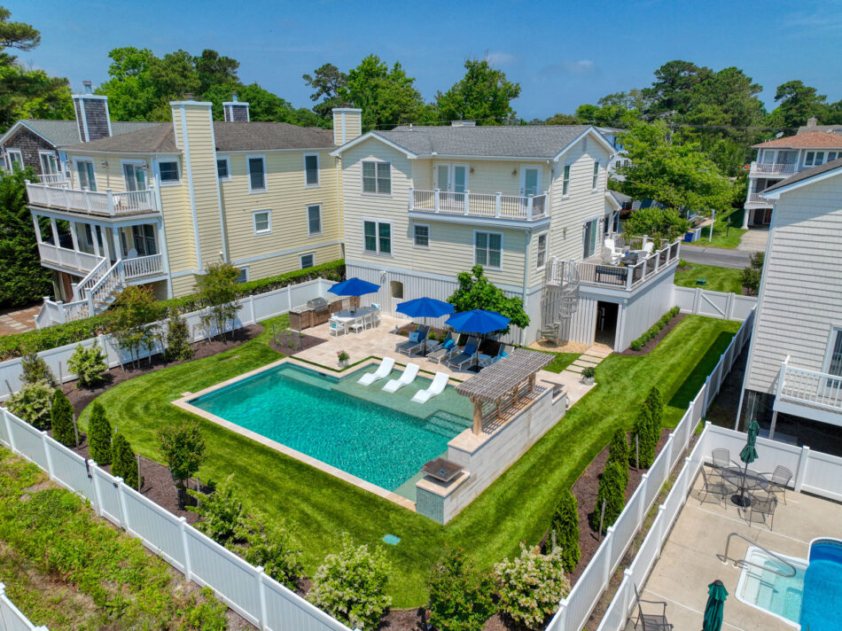 This project began with a vision: a pool accompanied by a stylish pool house that could double as a serene home office for the husband’s work-from-home days. However, midway through the design phase, Bethany Beach implemented new zoning laws, requiring us to reimagine the space entirely.